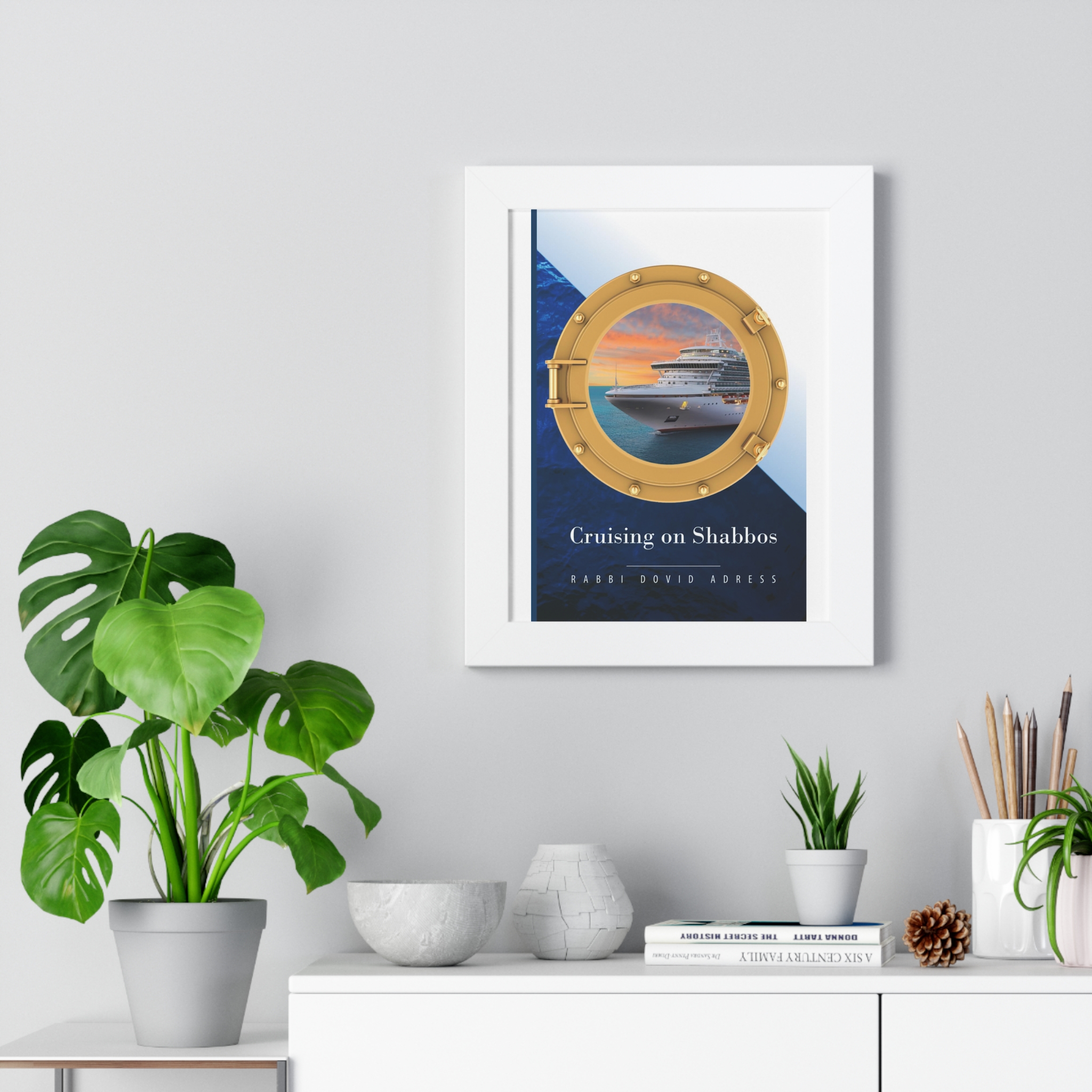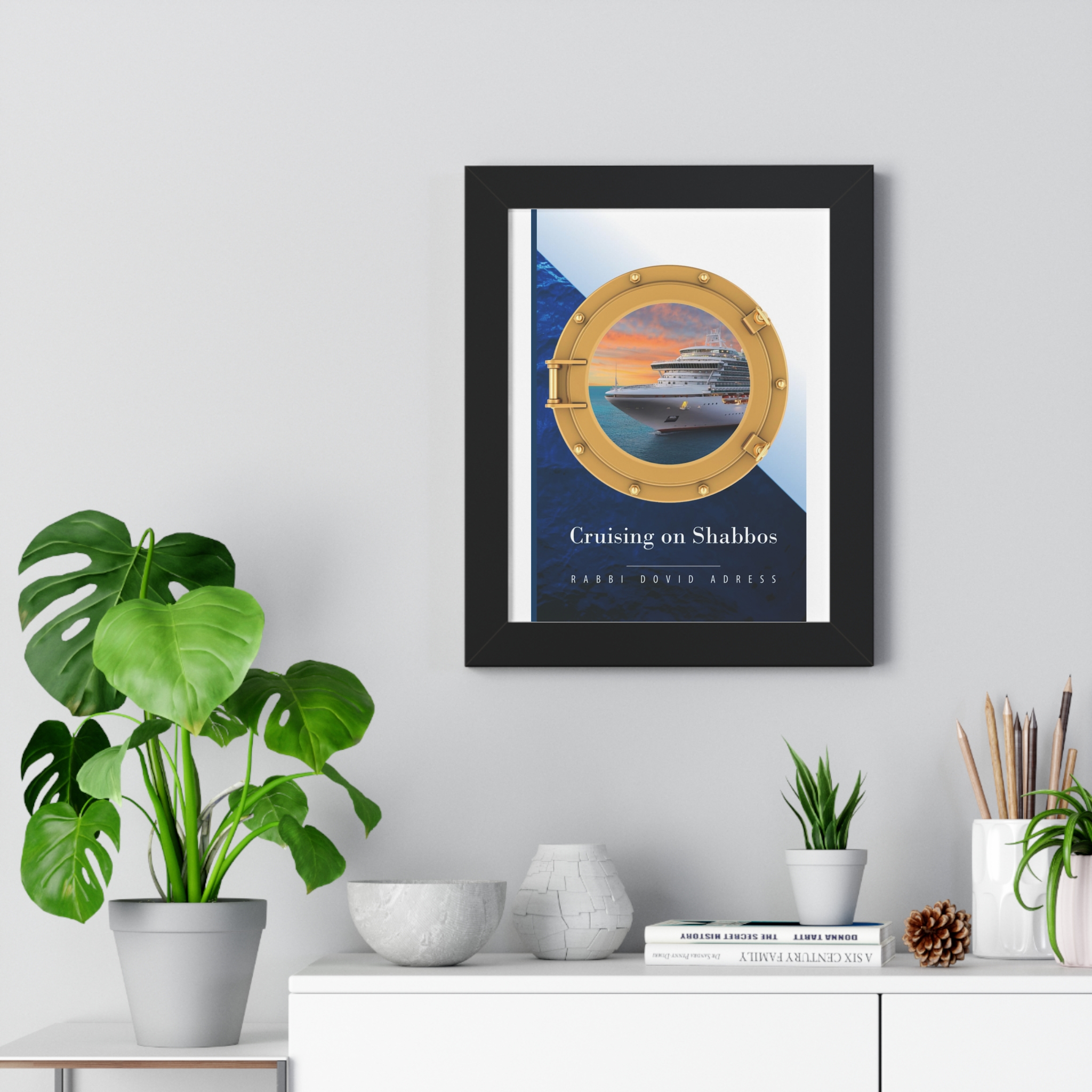 A framed vertical poster that brings a calm, maritime elegance to any wall. Printed on museum-grade matte paper, the artwork is protected behind a clear acrylic cover and presented in a slim, finished frame available in black, white, or walnut. Built-in or included hanging hardware makes installation straightforward. The piece reads like a quiet window to the sea — warm sunset tones and a classic porthole graphic create a contemplative, travel-inspired mood that suits living rooms, studies, or entryways.