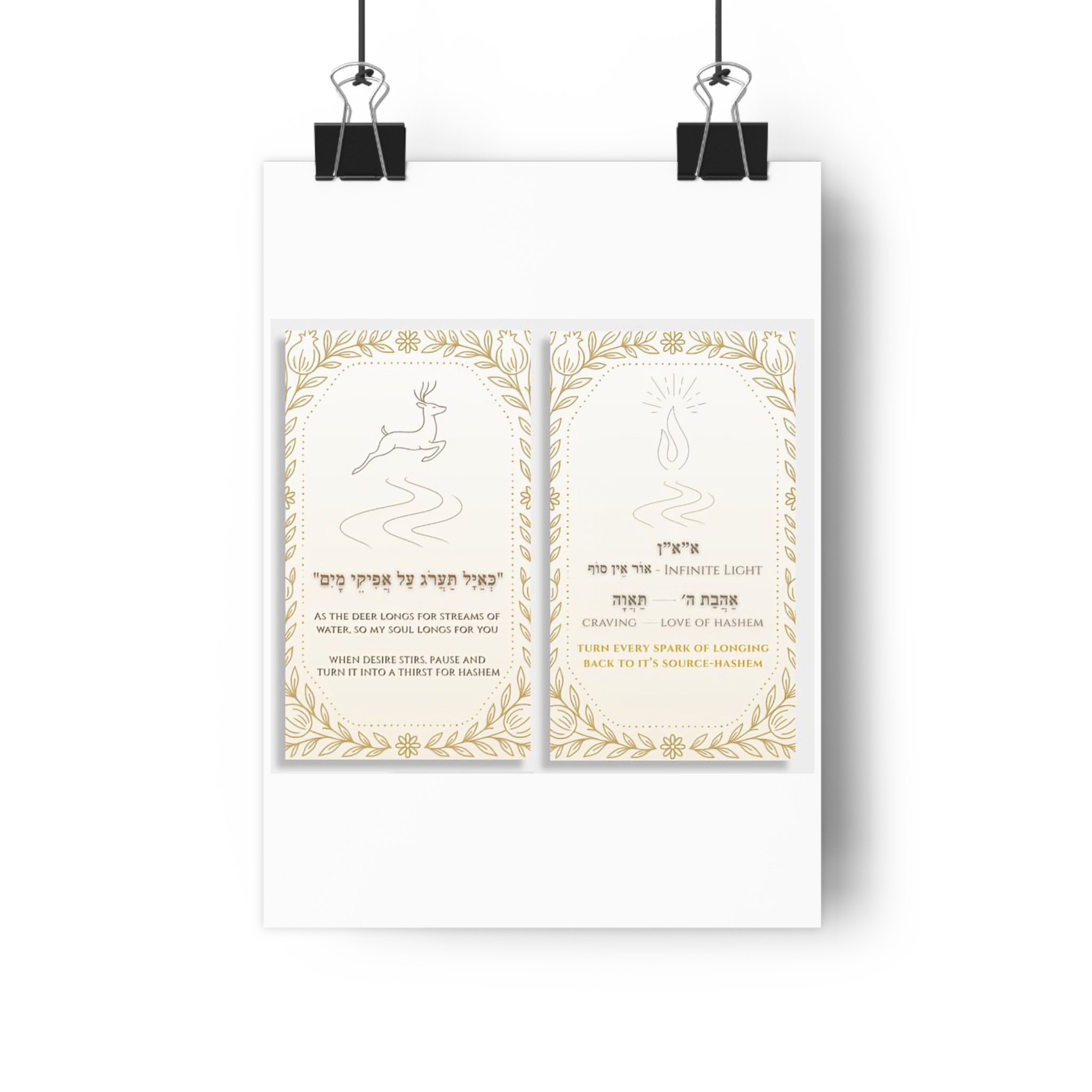 This giclée art print brings a quiet, reverent presence to any wall. Printed with pigmented archival inks on museum-grade paper, the soft matte finish and subtle gold-leaf–inspired border stay luminous without glare. The paired panel design — delicate line illustrations and gentle Hebrew text — reads like a small prayer or blessing, inviting calm and contemplation. It hangs easily framed or with simple mounting methods and fits into living rooms, entryways, or intimate corners where reflection and tradition are welcomed.