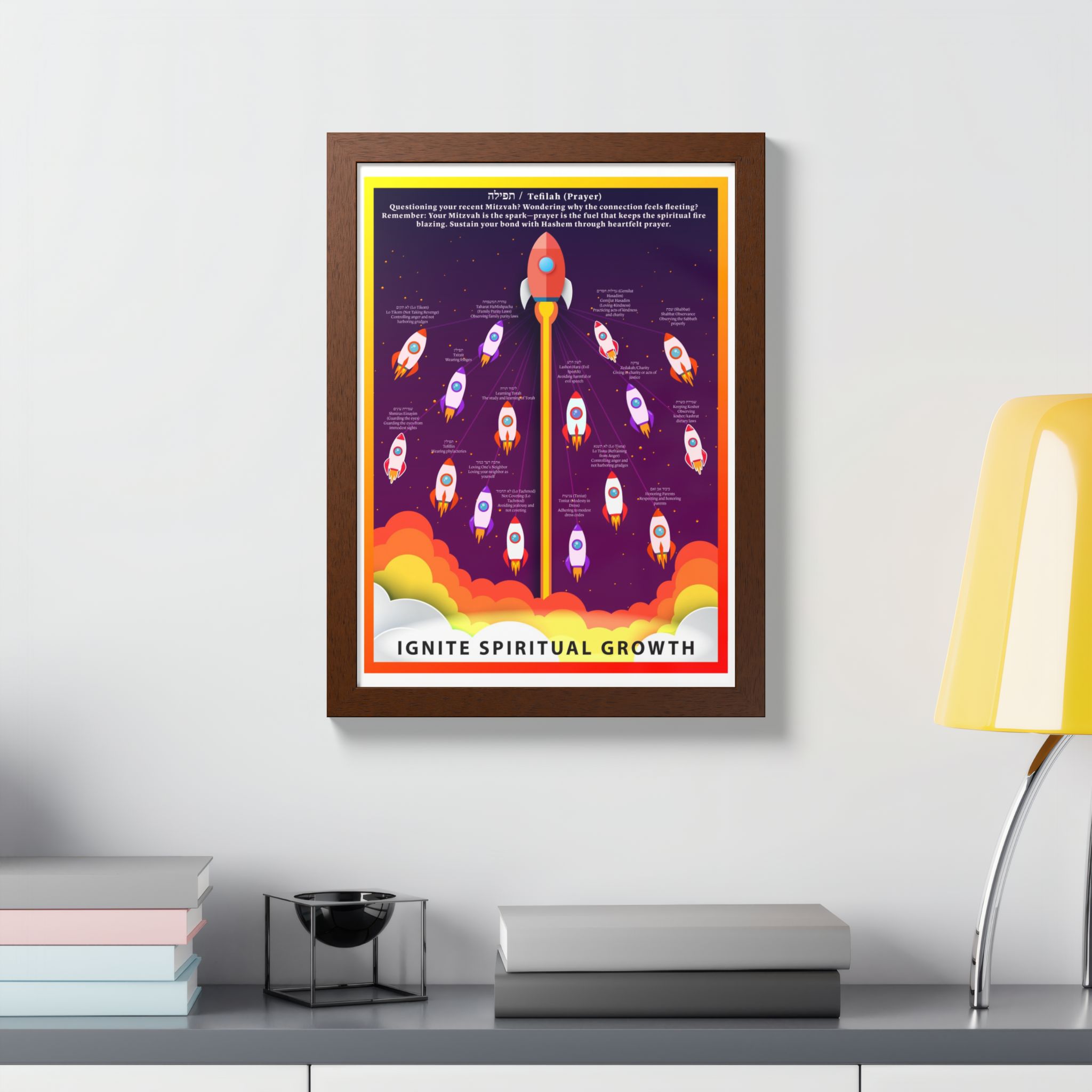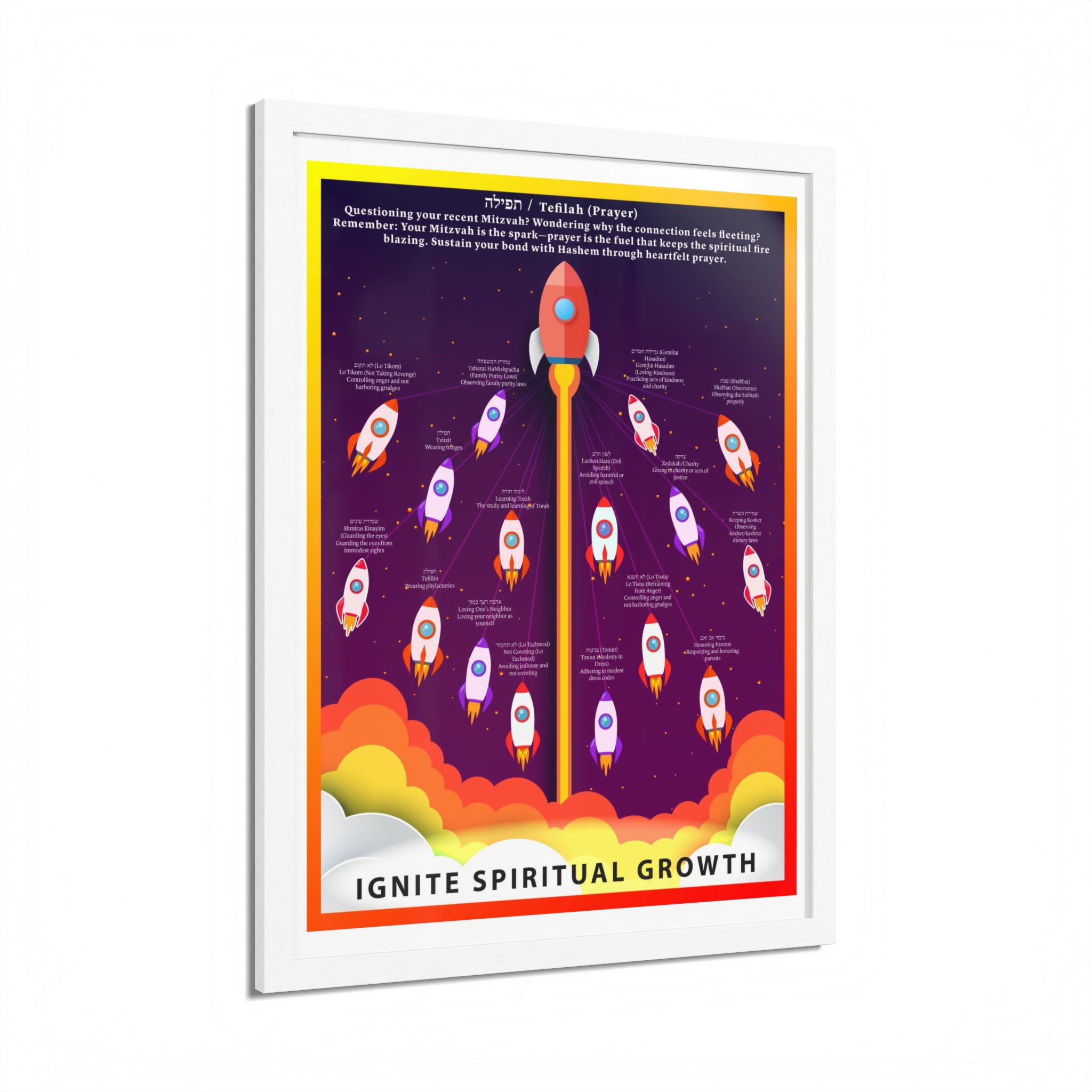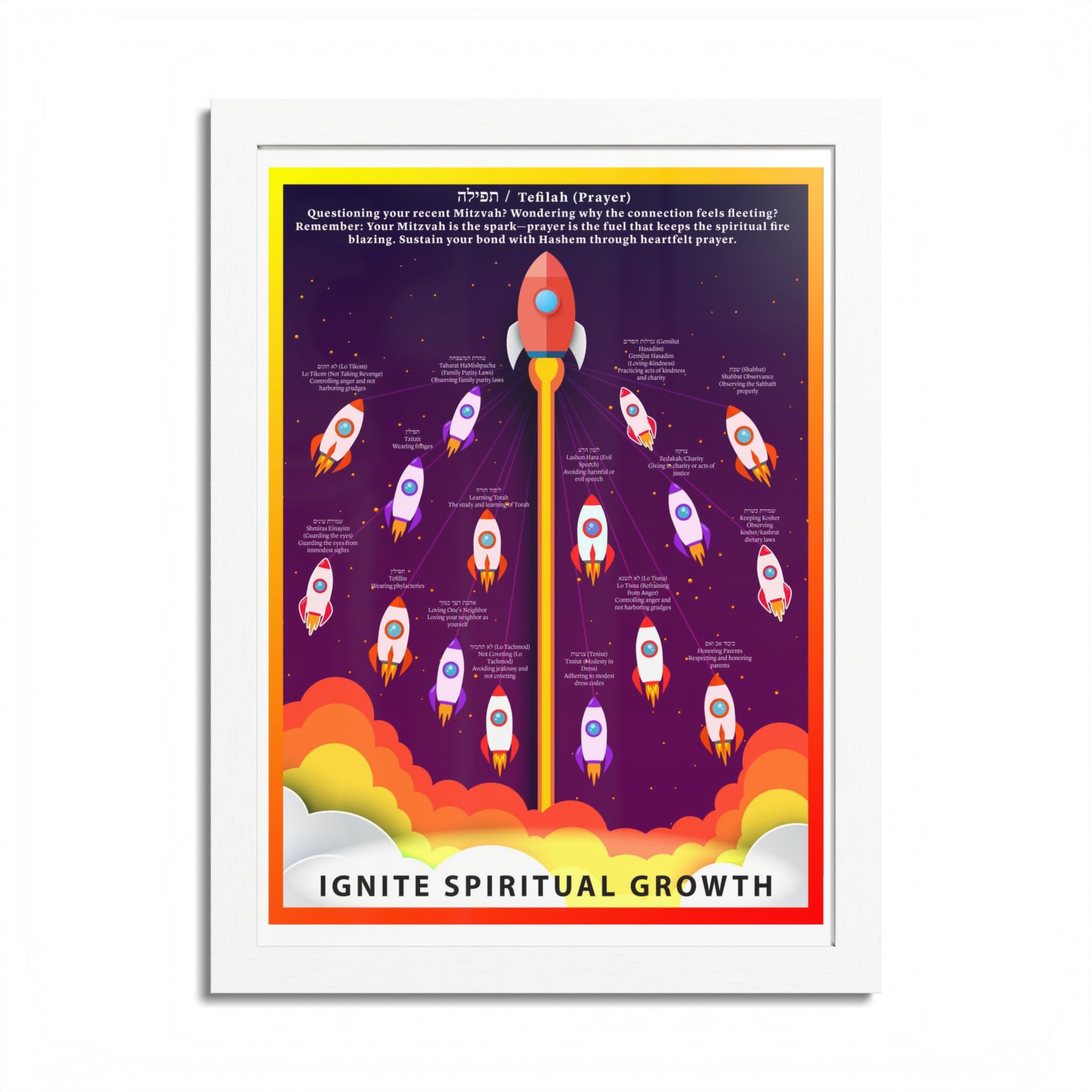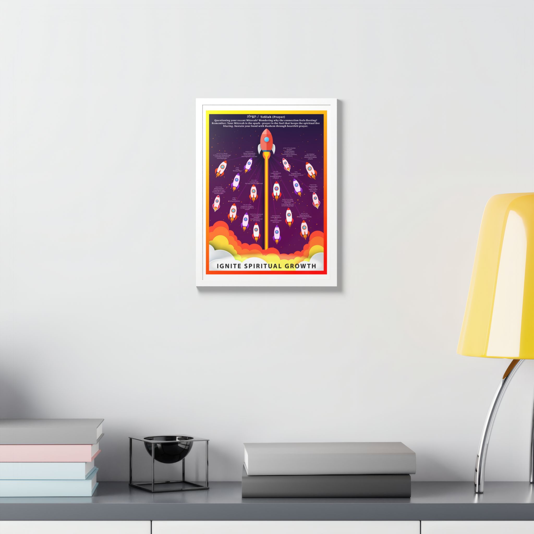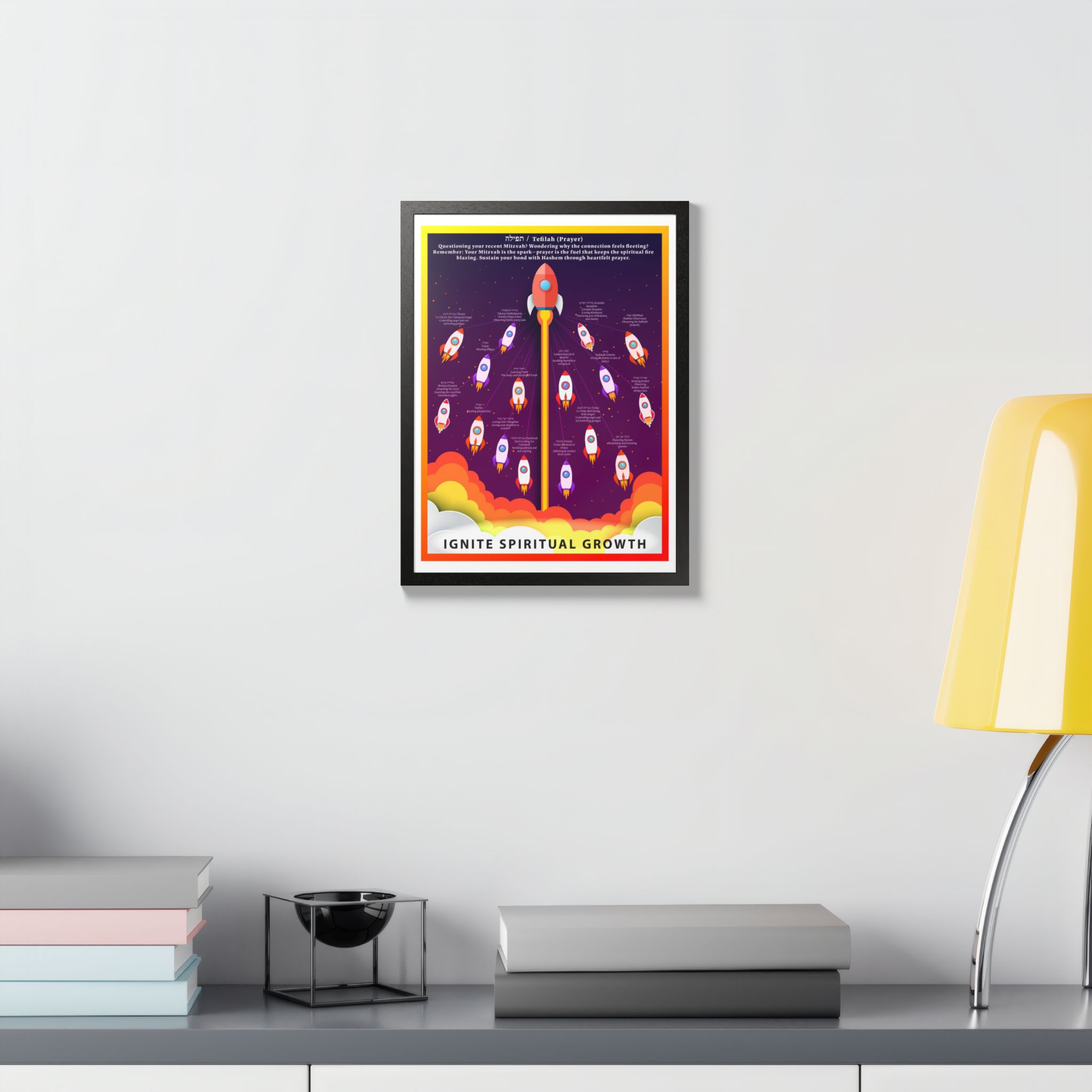 Bring warmth and inspiration into a room with this framed poster — a vibrant, ready-to-hang piece that blends bold color and handcrafted detail. Deep purples and fiery oranges draw the eye to an uplifting rocket motif and the phrase “Ignite Spiritual Growth,” while crisp printing keeps every element sharp on semi-gloss 200 gsm paper. A clear Perspex insert protects the print, and the hand-crafted wooden frame adds natural texture and depth. Hung vertically or horizontally, it becomes a calming focal point for quiet corners, meditation nooks, or cozy reading spots where growth and reflection are welcomed.
