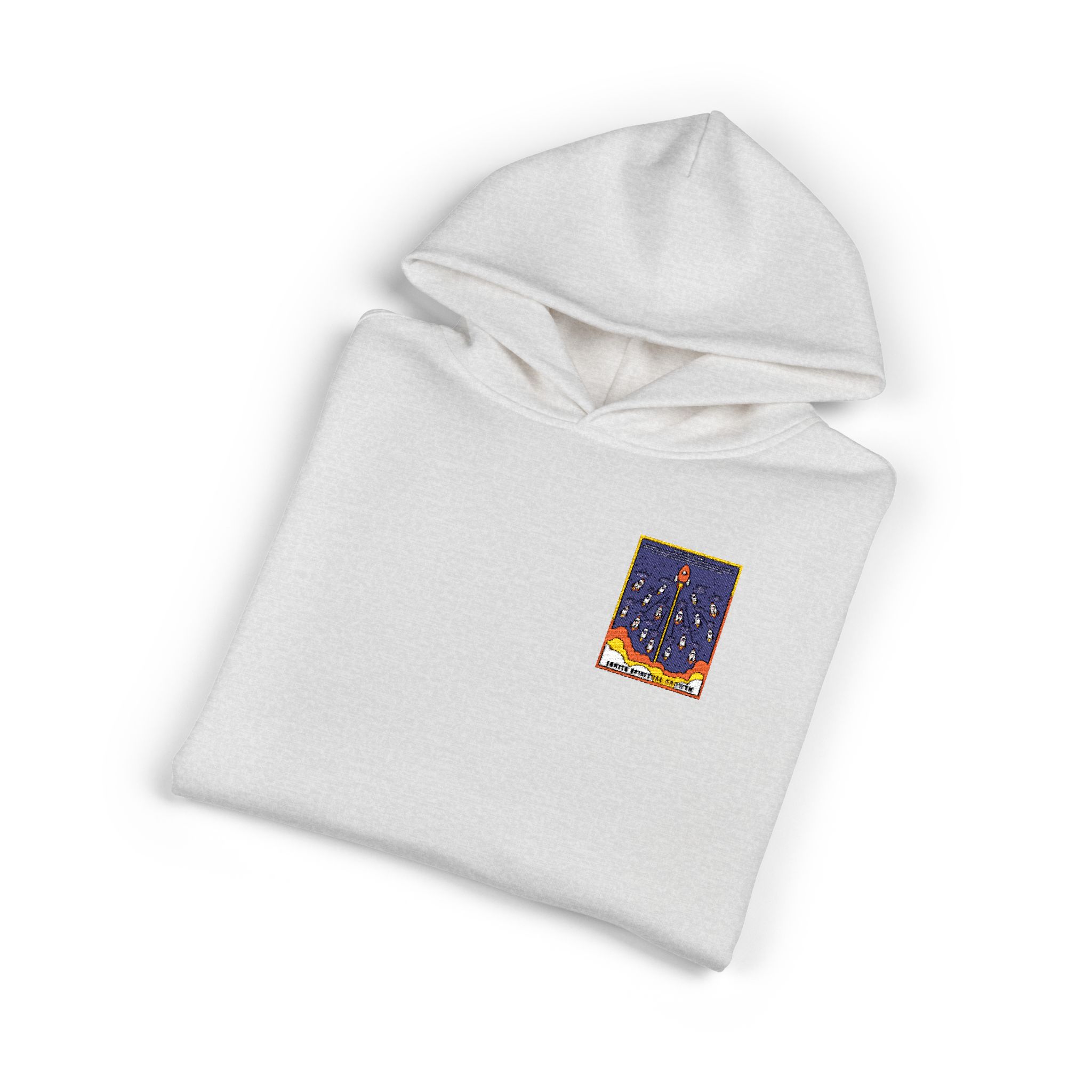 A soft, relaxed hoodie designed for slow mornings and late-night walks. The medium-heavy 80/20 cotton-poly blend feels warm without weighing you down. A subtle, colorful art patch sits over the heart, adding a quiet nod to creativity without shouting for attention. The drop shoulder and roomy cut let you layer a tee or thermal underneath; the kangaroo pocket keeps hands warm and small essentials close. It’s the kind of hoodie you reach for when you want comfort that still looks considered — whether you’re sketching at a café, camping by a small fire, or unwinding at home after a long day.